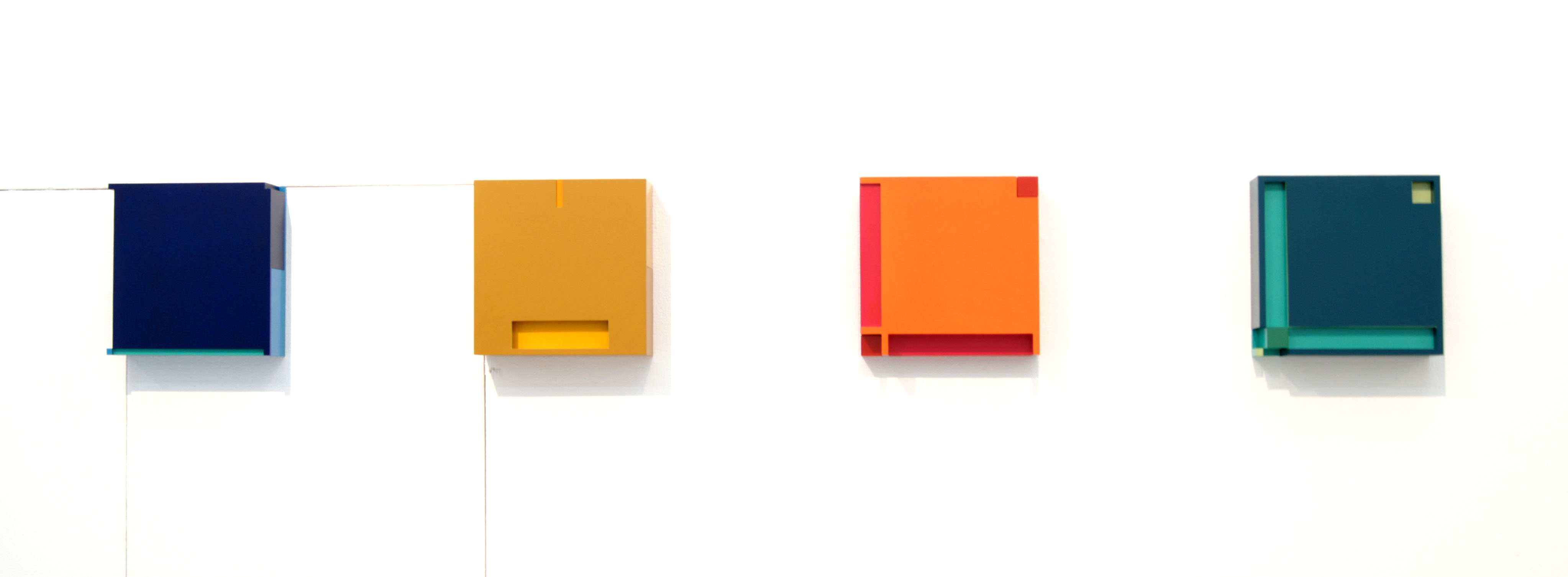 Untitled(左から blue,yellow,red,green) 2012年 25×25×8cm wood,AEP