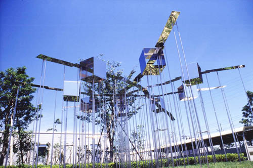 「風景の瞬間」1995年 新潟市営庭球場設置 ステンレス鏡面板、パイプ 900×900×h350cm