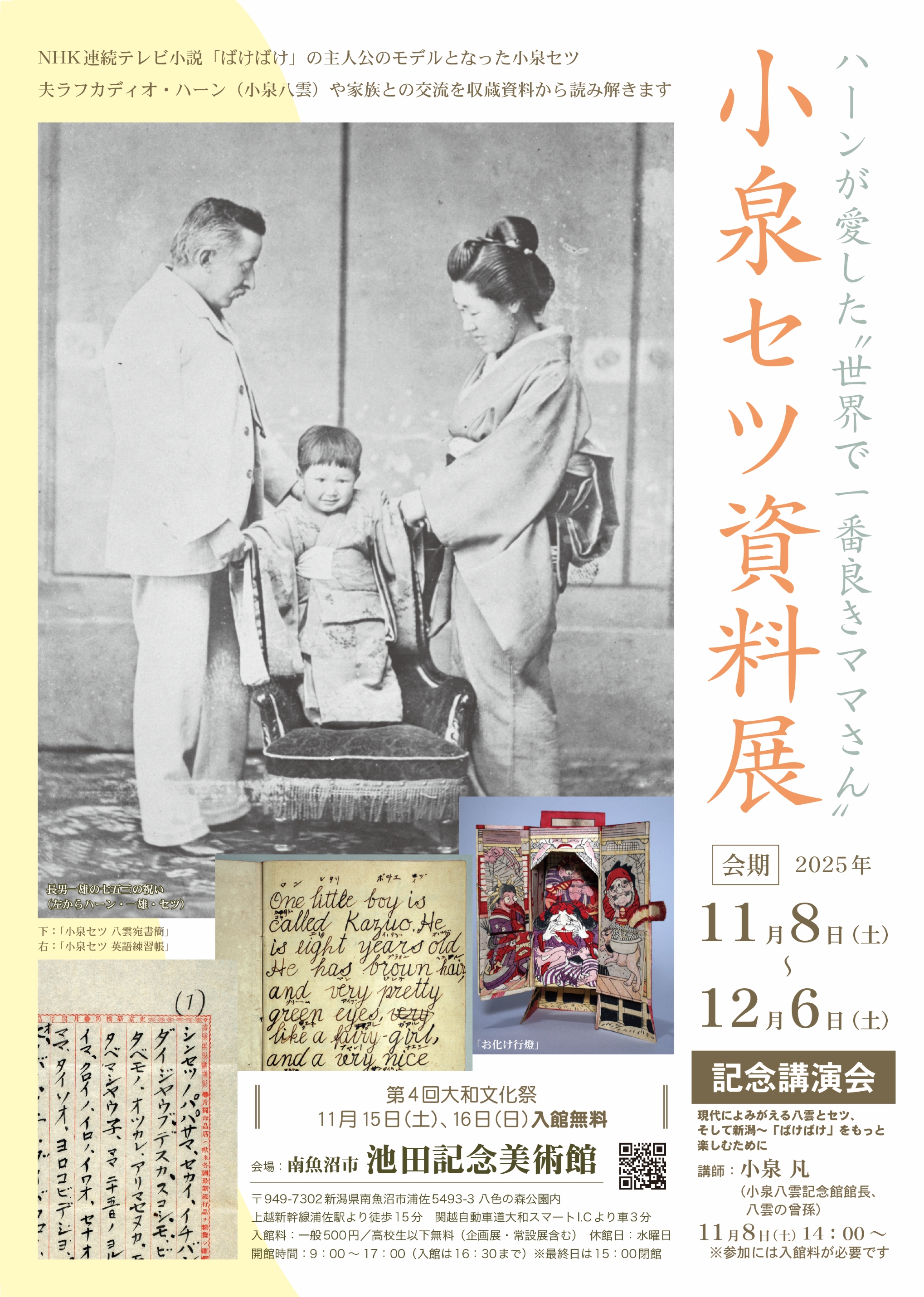 NHK連続テレビ小説「ばけばけ」の主人公のモデルとなった小泉セツに関する池田記念美術館の収蔵資料を展示します