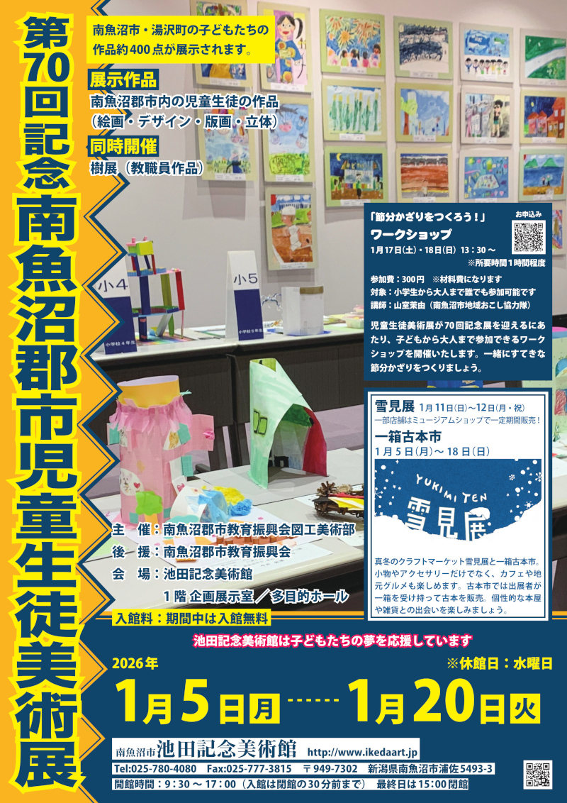 南魚沼市と湯沢町の子ども達の作品約400点を展示します。