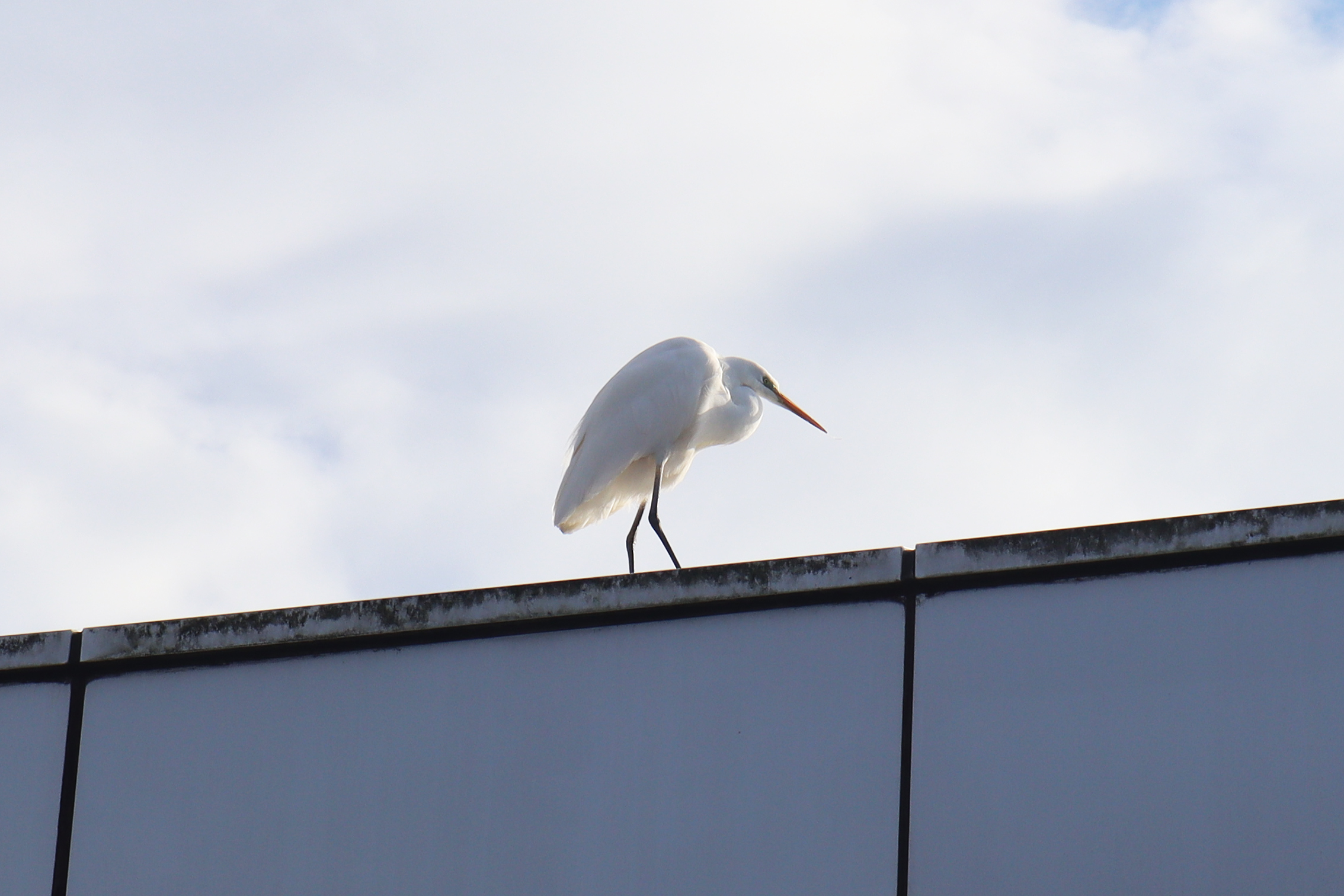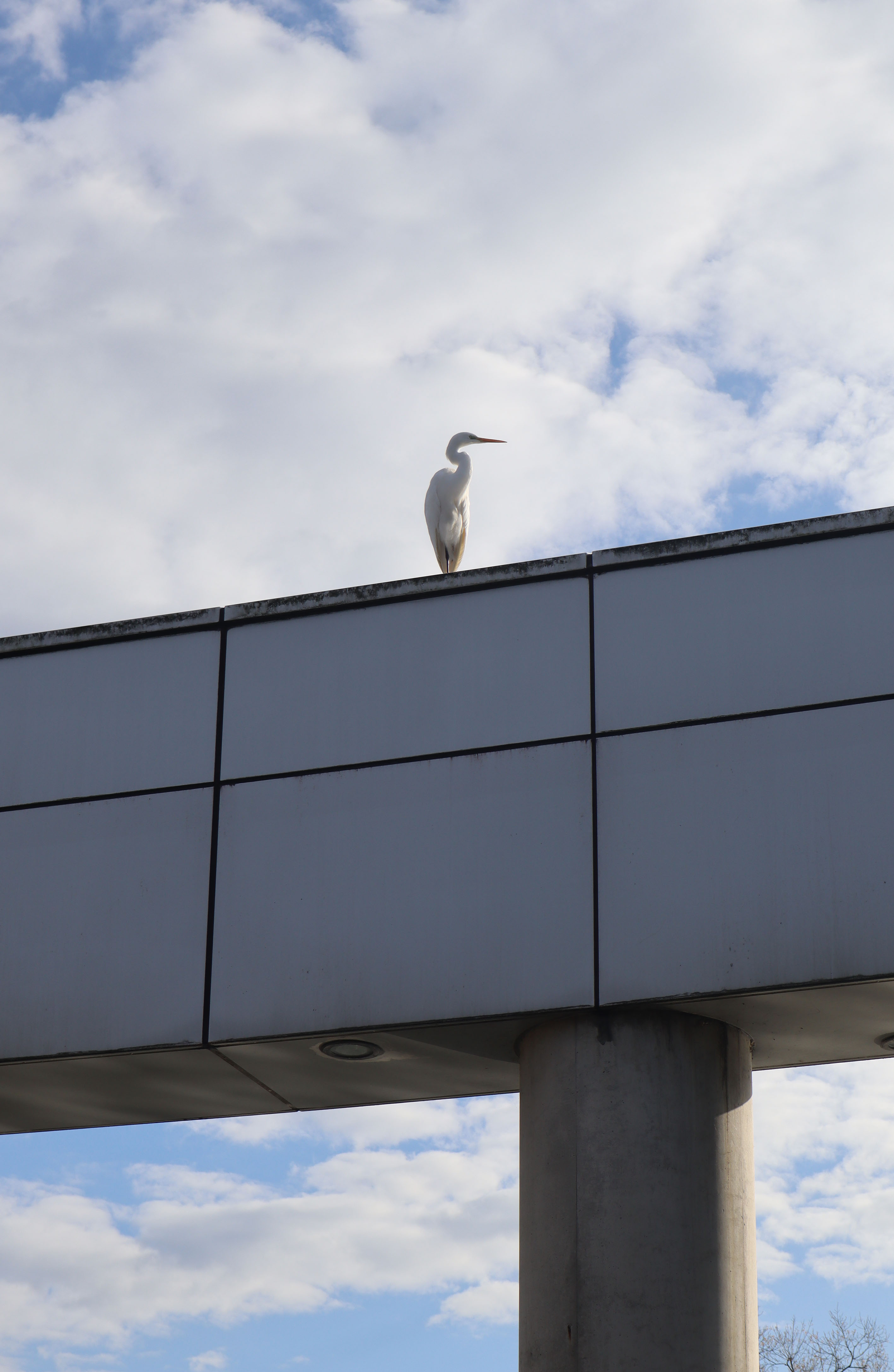 いつもは光の池にいるサギ(?)が美術館の入り口近くで朝日を浴びていました。